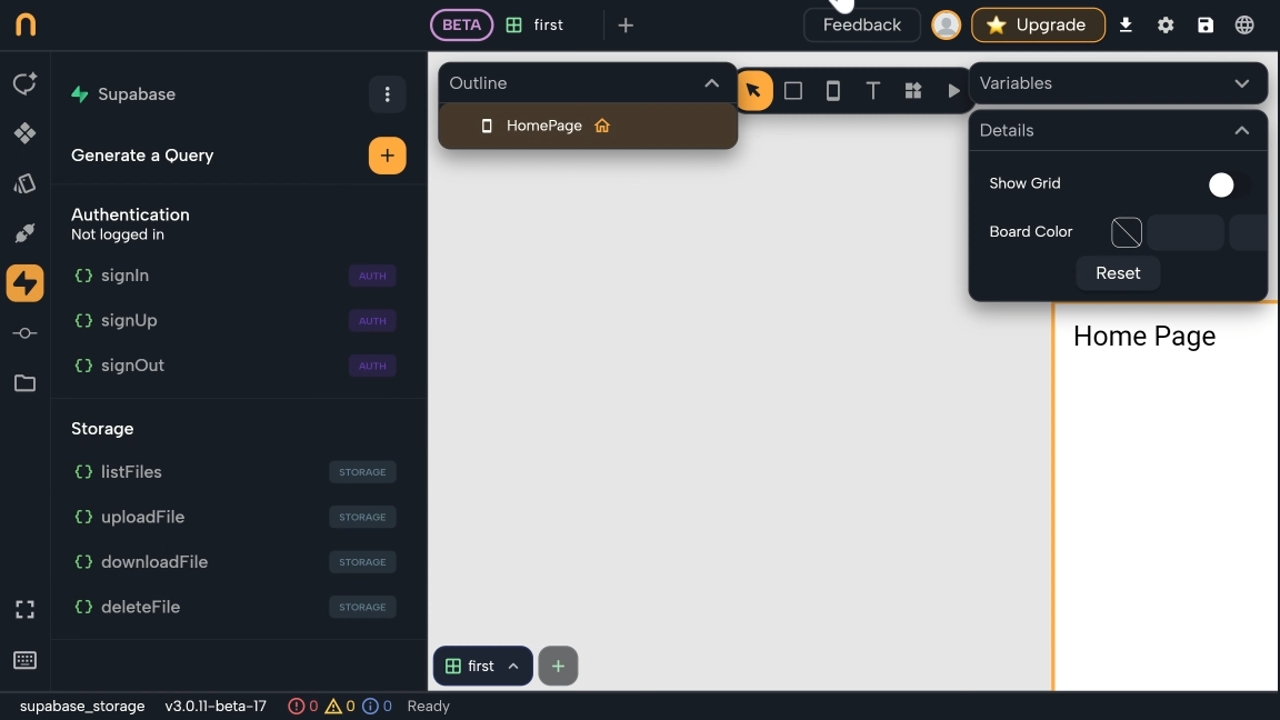 You can view your generated Supabase storage queries in the left panel under the Storage section.